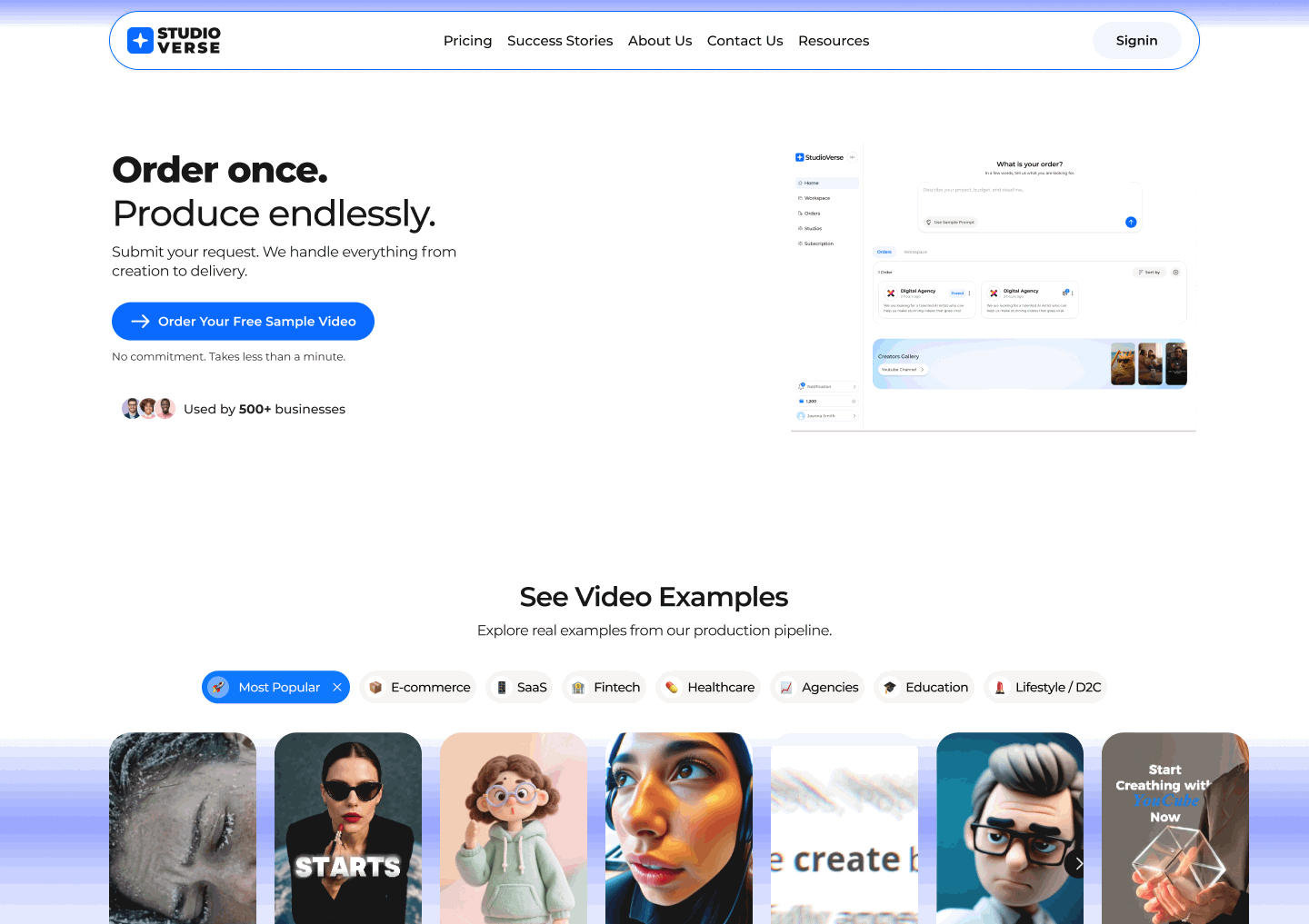 Upload one product photo, get 10+ ad-ready videos in hours. Fresh variants every week across every SKU. No UGC marketplace, no in-house studio, no agency retainer.